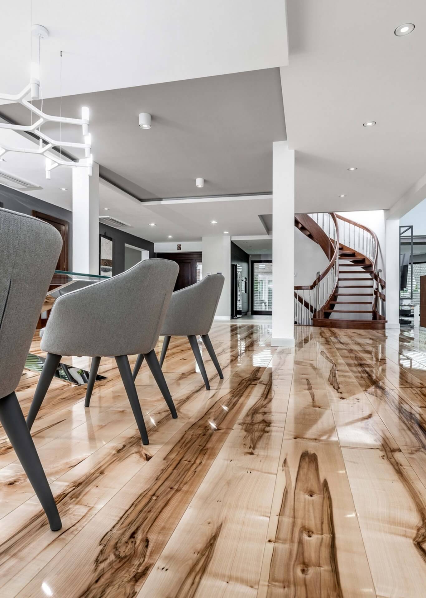 Drewno: jaworDługość: 6,8 mbSzerokość: 24 cmWykończenie: lakier połyskDodatkowo: wykonana na ogrzewanie podłogowe