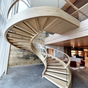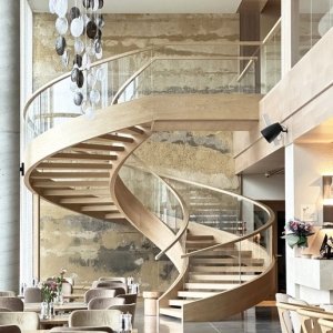 Konstrukcja: policzkowa ażurowaBalustrada: szkło bezpieczne, poręcz drewnianaDrewno: dąb naturalny lekko bielonyRealizacja: wykonana w hotelu Glar – Wisełka