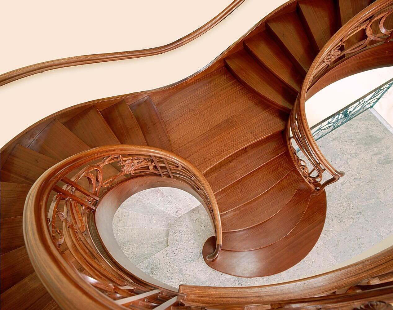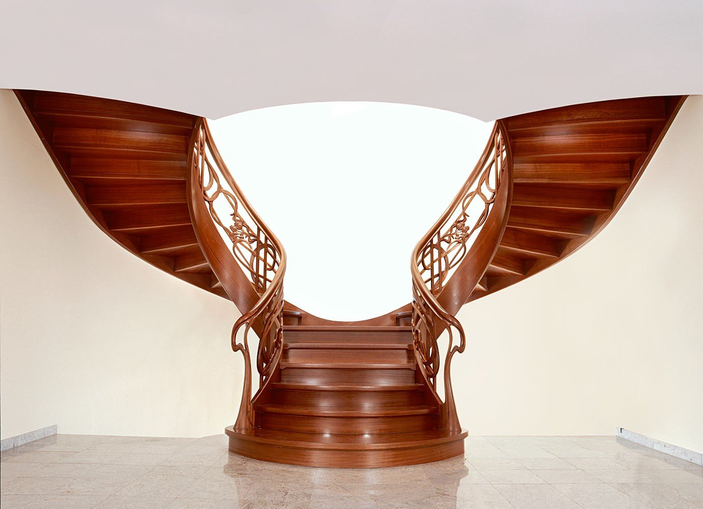 Kunsztu tym schodom dodaje na pewno przepiękna, ręcznie rzeźbiona balustrada.